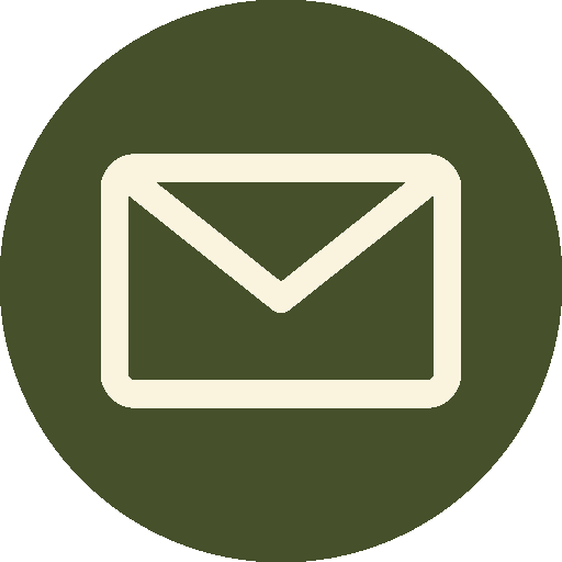 Icon of two overlapping speech bubbles, one inside the other, in dark green on a beige circular background.